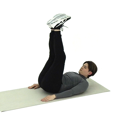 仰向けで脚を持ち上げる動作により、ぽっこりお腹の解消や骨盤の安定に効果的。