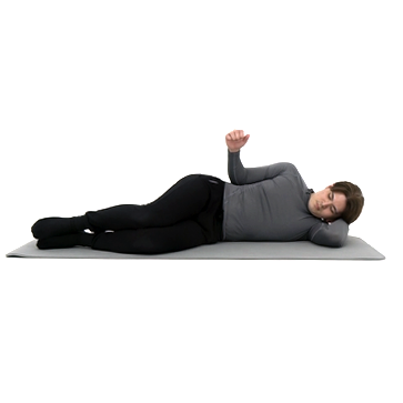 横向きに寝て、下の腕を前に出し、上の肘を体の横で90°に曲げる