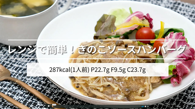 レンジで簡単ヘルシーに!きのこソースハンバーグ