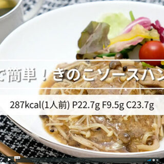 レンジで簡単ヘルシーに!きのこソースハンバーグ