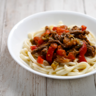 美肌レシピ!牛もも肉の野菜ソースかけうどん